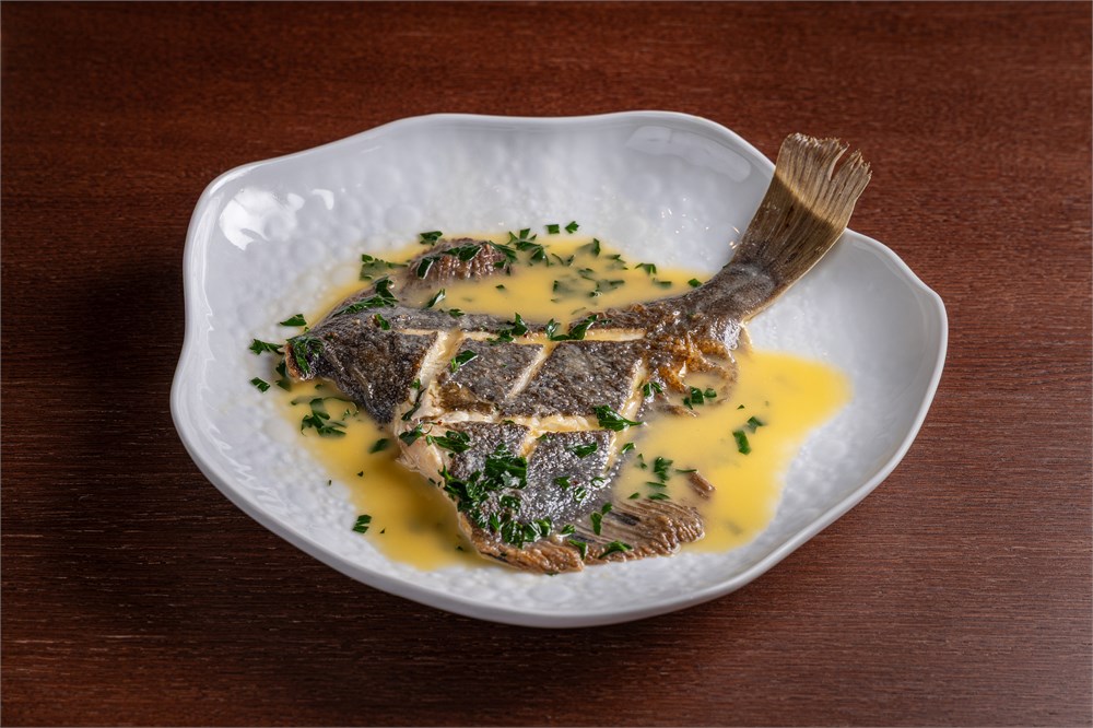 Камбала, масло оливковое, вино белое, бульон рыбный, петрушка, сок лайма