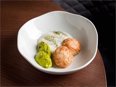 Крабовые котлеты с гуакамоле с эспумой из пармезана